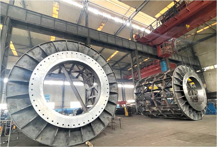 公司重點(diǎn)項(xiàng)目兩件超大φ4.96m×5m圓筒篩篩架第一件焊接已進(jìn)入收尾沖刺階段,后續(xù)打磨交檢合格后進(jìn)行最后涂裝。